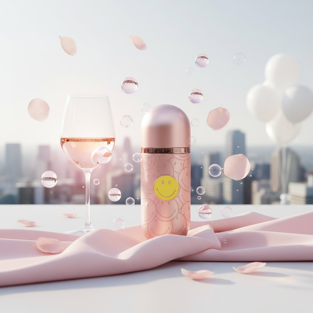 212 Rosé Smiley Ltd. is a joyful burst of happiness in a bottle. With sparkling Champagne Rosé and a hint of Pink Pepper, it instantly uplifts your spirits. The heart features soft Peach Tree Flower and a radiant Rose Bouquet for a modern floral bliss. Wrapped in Queenwood and White Musk, it leaves a warm, seductive trail. Every spray is like a smile, radiating charm and confidence.
