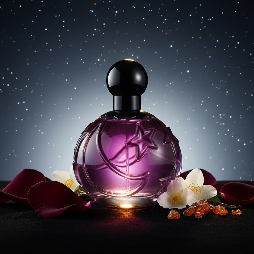 EXPERIENCE IT: Sun Moon Stars Midnight opens with a mysterious blend of soft fruity notes and sparkling bergamot, immediately setting a seductive, nighttime mood. The heart unfolds into a lush floral bouquet of jasmine, rose, and lily of the valley, romantic, velvety, and deeply feminine. As the fragrance deepens, warm amber, creamy vanilla, smooth sandalwood, and sensual musk create a rich, enveloping dry-down that feels intimate, exotic, and irresistibly alluring.